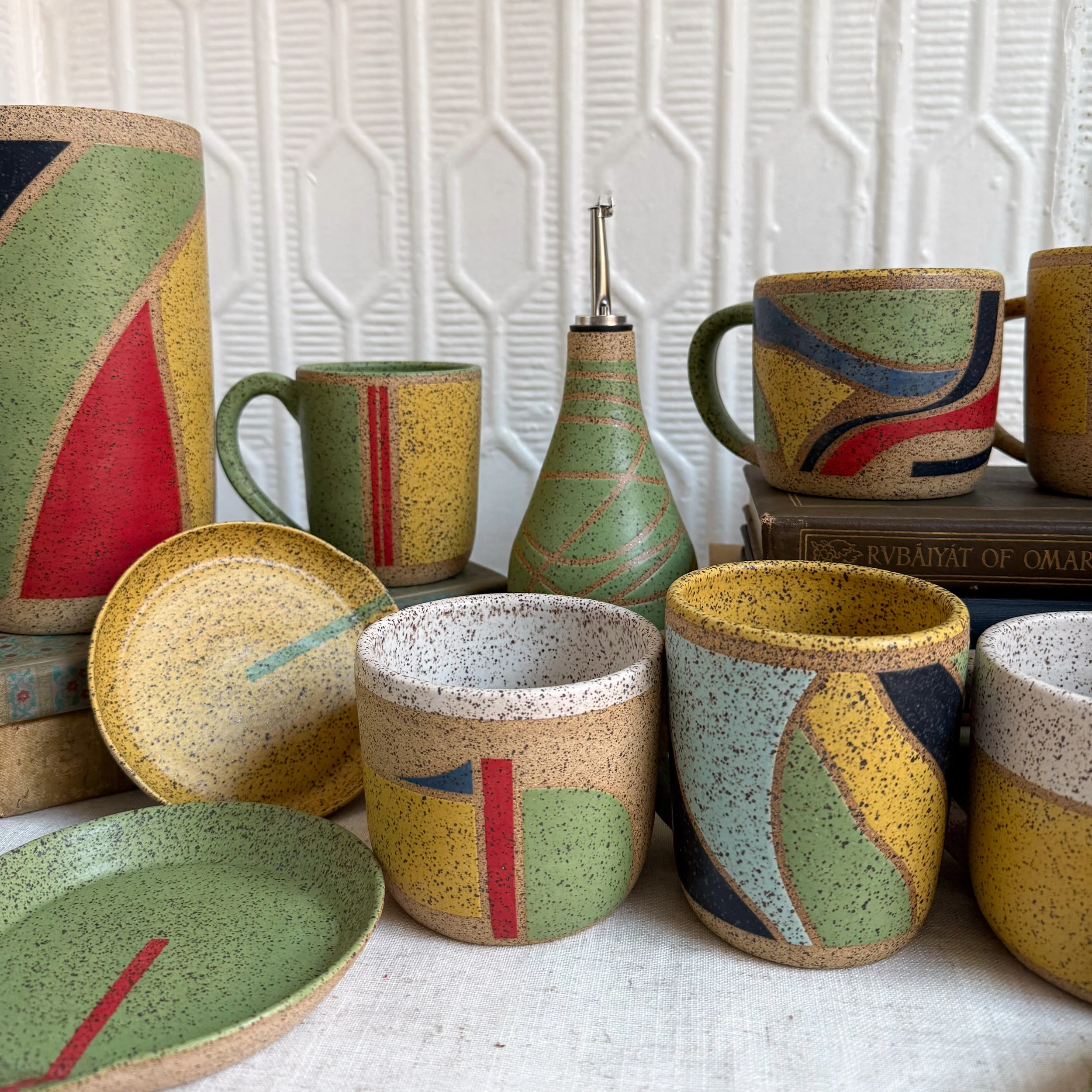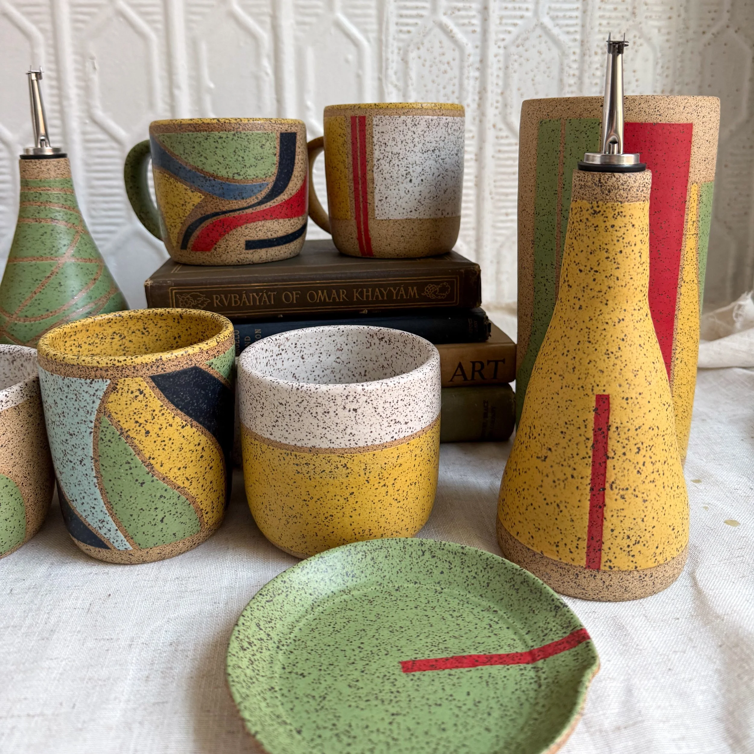 Small-batch functional ceramics rooted in the Catskills. Each piece is wheel-thrown and hand-painted, blending clean forms with earthy tones and robust geometric accents. Inspired by the movement and textures of nature, the work feels both modern and grounded, embracing an organic path to perfection.